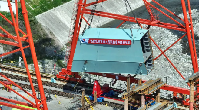 青城大橋首段鋼拱成功吊裝 預計7月實現鋼拱合龍